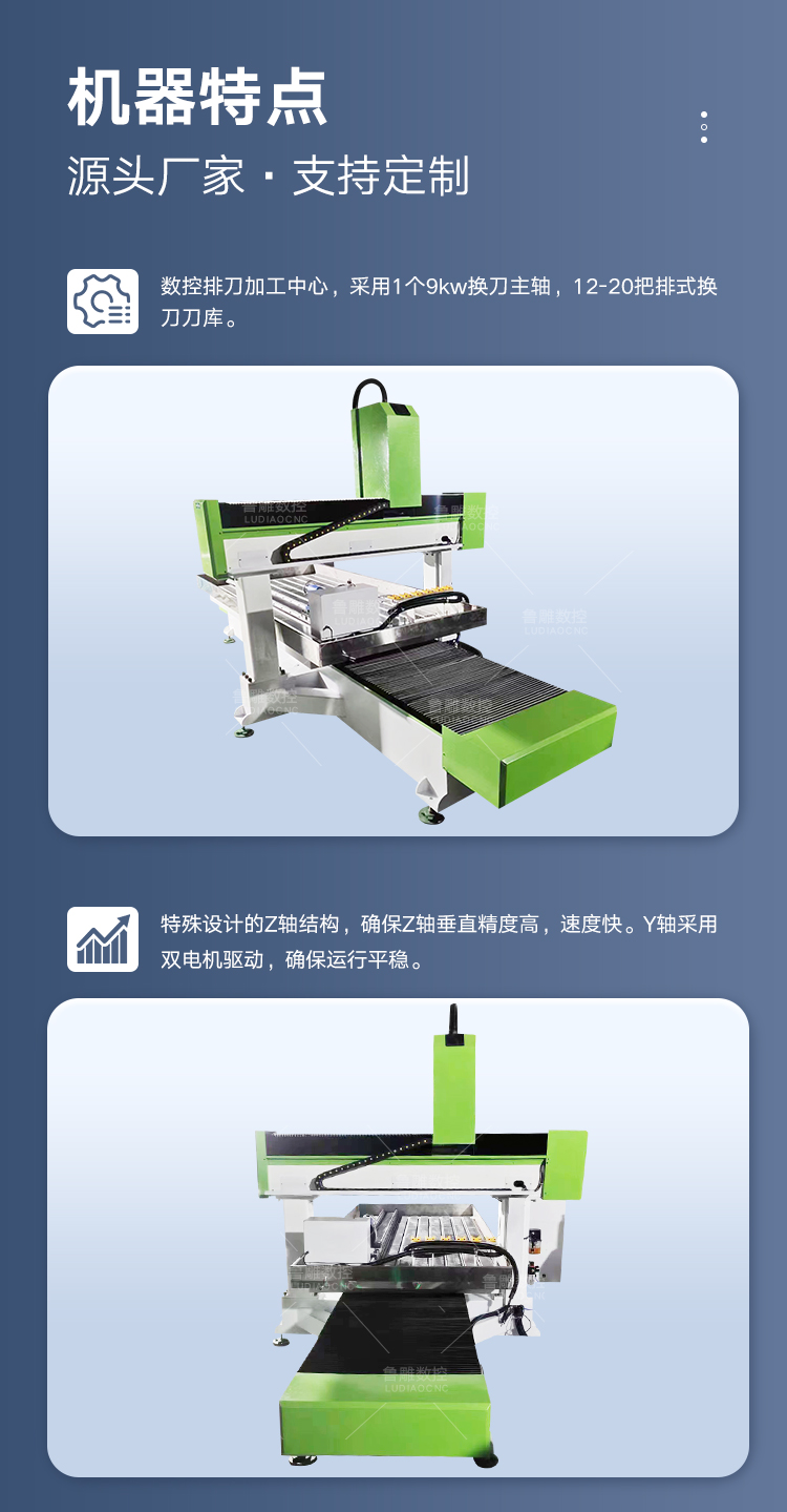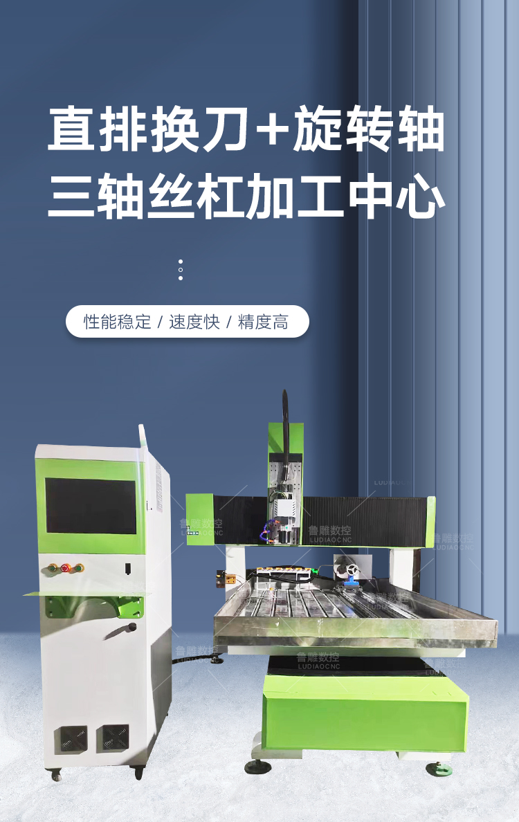 1325直排換刀加旋轉(zhuǎn)軸三軸絲杠加工中心